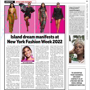 📍 2022 – Launch of Self Titled Column in Caribbean Times, NY feature on diaspora fashion, culture & PR coaching debut